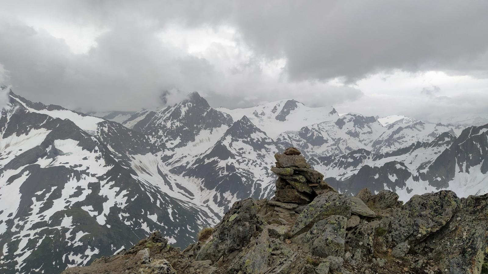 Zum Glück wollte niemand in unsere Richtung, wir blieben schön alleine. Gemütlich überkletterten wir die kurzen Kraxelabschnitte die bis maximal in den 3ten Grad reichen. Caro übernahm Heute mehrheitlich den Vorstieg und ich chillte hinten dran. Das Wetter sah teils bedrohlich aus, alles bewölkt und teils mit frischem Wind, aber der Regen kam nie bis zu uns. Nach ein wenig mehr als 3 Stunden standen wir auf dem Gipfel und ich erleichterte mich erstmal.