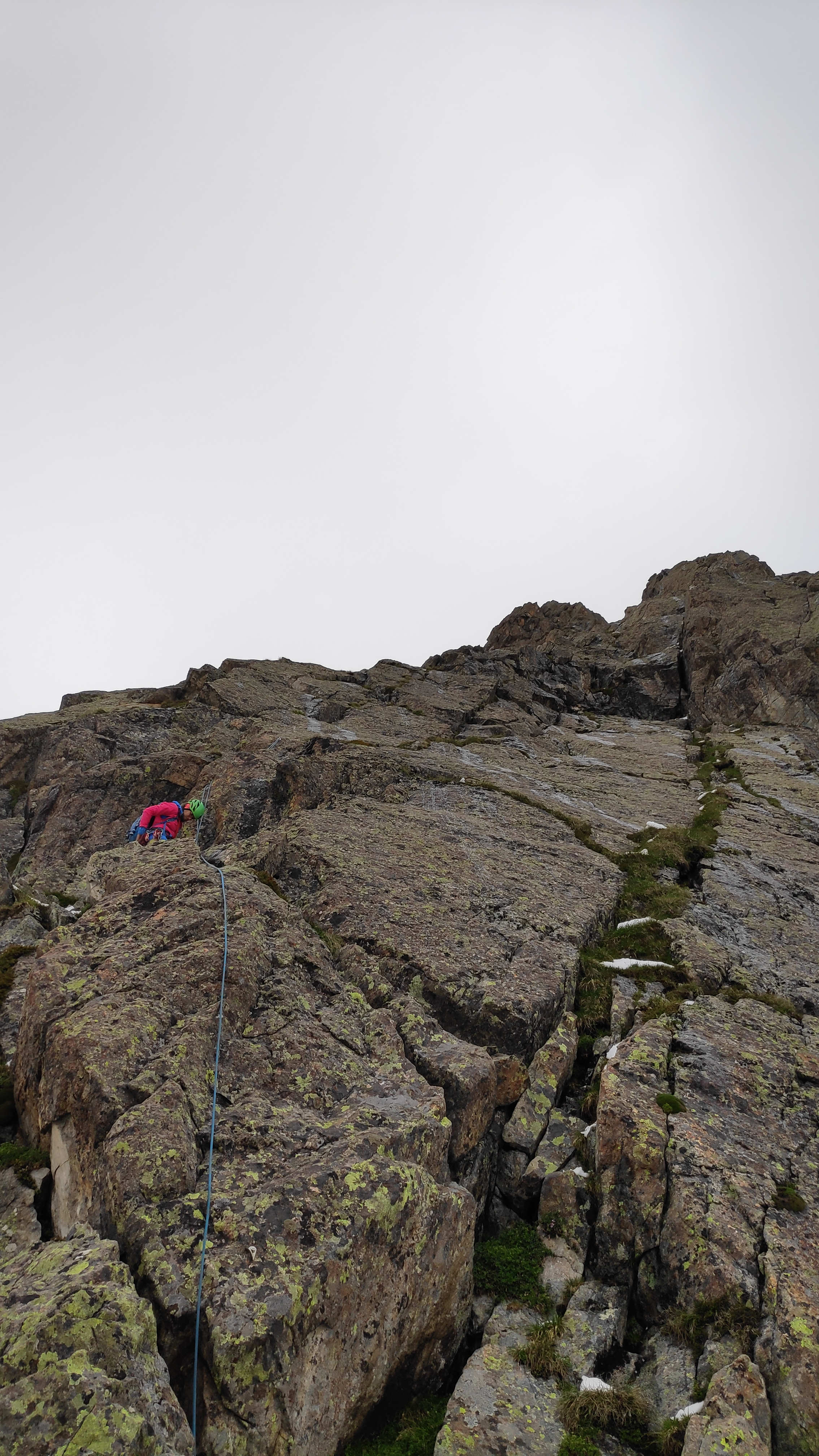 Improvisiert über die Route abseilen ist immer ein riesen Spass. Und dann noch vom Vorbau einen Abstieg zu finden war auch lustig bis anstrengend. Nach 9h waren wir zurück auf dem Parkplatz und zufrieden mit dem Entscheid abgebrochen zu haben, denn das ganze Wendenhorn war in Nebel und Woken eingehüllt, sicher nicht viel trockener der Fels.